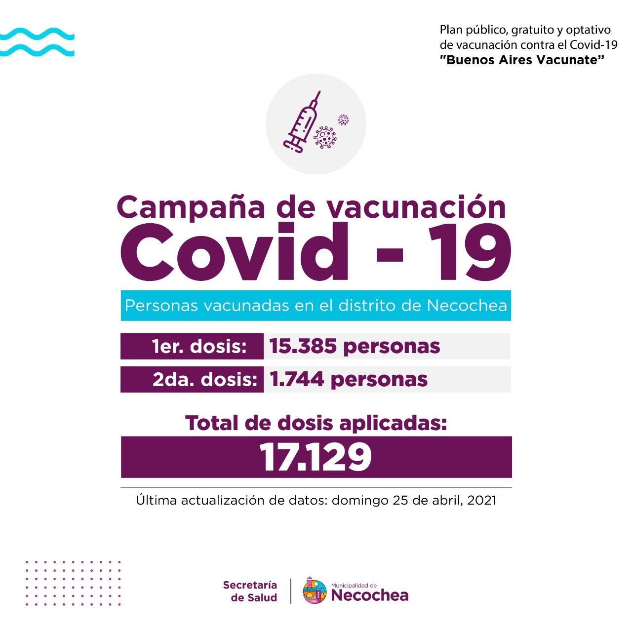A partir de este domingo 25 de abril, junto al informe diario de estadísticas Covid 19, la Secretaría de Salud de la Municipalidad de Necochea confirmó que agregará el dato de la cantidad de vacunas aplicadas en el distrito, actualización que tendrá frecuencia semanal.