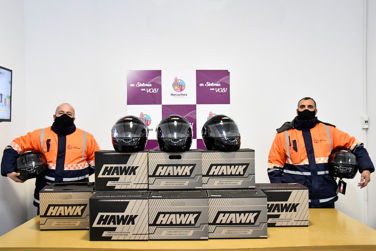 Con fondos municipales, la Dirección de Tránsito, área a cargo de Julián Corro, adquirió 13 nuevos cascos para el personal motorizado que cumple tareas en las calles del distrito todos los días.