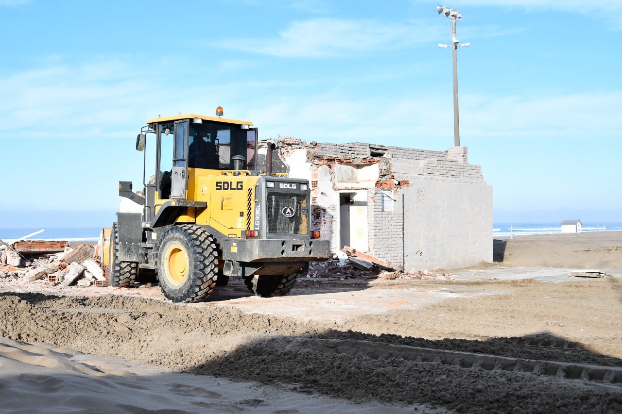 En la mañana de este martes, el municipio procedió a la demolición de una vieja edificación abandonada en la arena desde hacía muchos años, cuando terminó la concesión del ex Balneario Amarras, ubicada sobre la línea costera, en Avenida 2 entre 83 y 85, con el objetivo de “empezar a tener visión hacia el mar” y “disfrutar de esta vista maravillosa que tenemos”, según explicó la directora comunal de Concesiones, Verónica Dones.