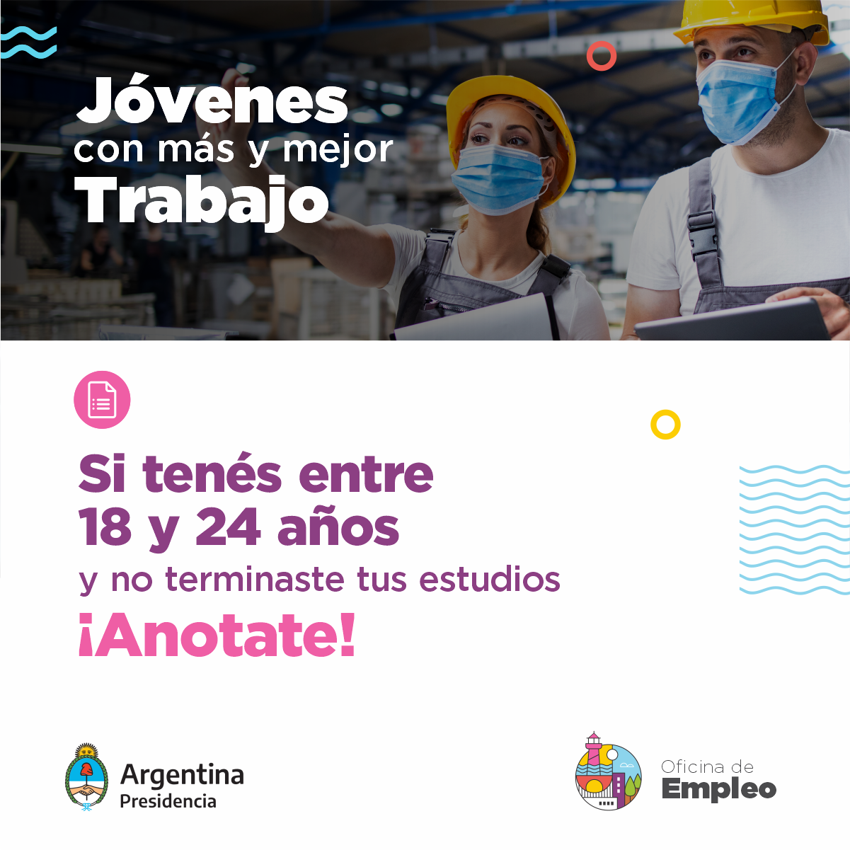 La Oficina Municipal de Empleo, área dependiente de la Secretaría de Planificación y Desarrollo Productivo, lanzó una nueva convocatoria para participar en Jóvenes con Más y Mejor Trabajo, un programa destinado personas de entre 18 y 24 años de edad, que no hayan finalizado sus estudios primarios o secundarios y estén desempleados.