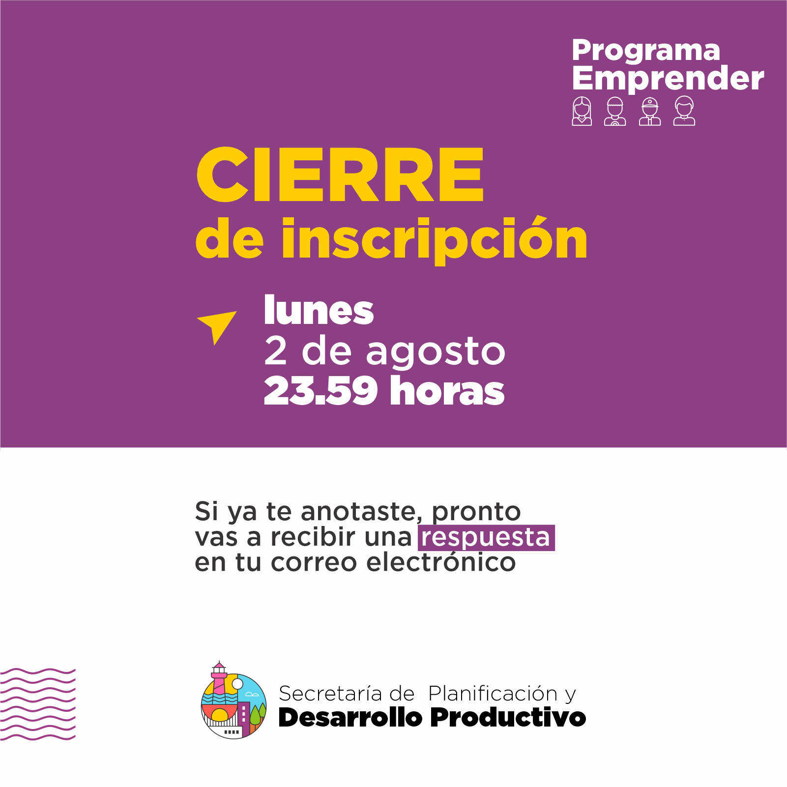 Hasta el próximo lunes 2 de agosto estará abierta la etapa de pre inscripción para para participar en el Programa Emprender, dirigido a aquellos vecinos del distrito que están iniciando un proyecto productivo y necesitan de asesoramiento y capacitación para consolidar su negocio.
