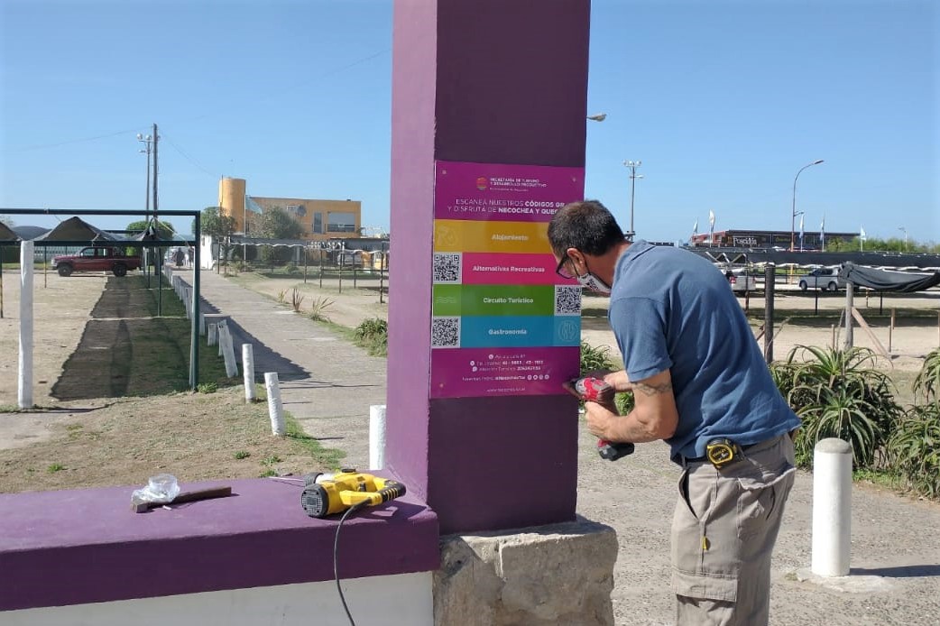 Para facilitar la estadía a quienes optan por el distrito de Necochea como destino de descanso, la Secretaría de Turismo y Desarrollo Productivo municipal se encuentra realizando una campaña de promoción con nueva señalética en los comercios de la Villa balnearia, carteles que llevan un QR para escanear y acceder, desde cualquier teléfono celular, a una guía con la oferta gastronómica y hotelera disponible.