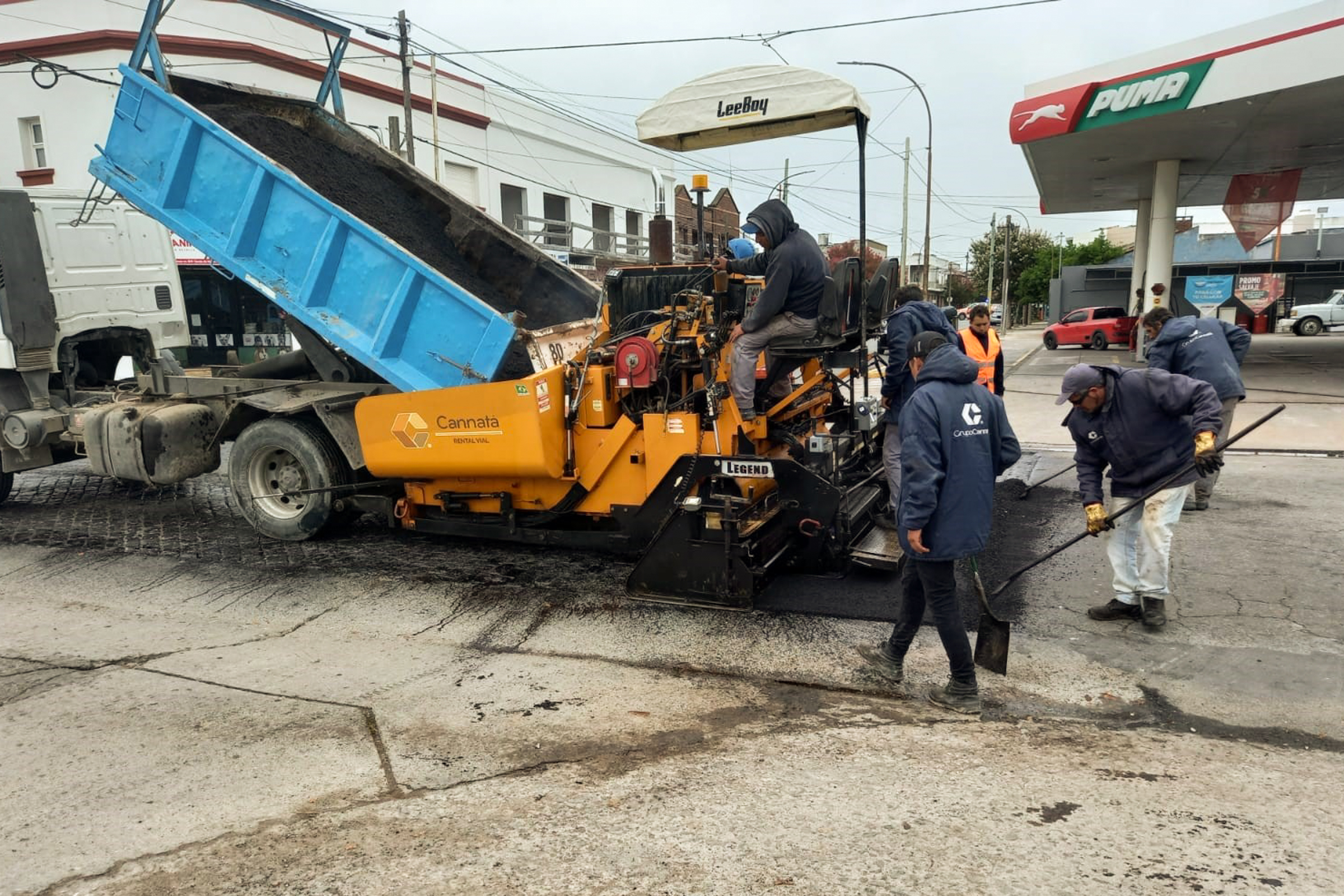 Aprovechando el material, los operarios trabajaron, a su vez, sobre una de las calzadas de la Plaza Dardo Rocha, sobre la Avenida 58 y pocos metros antes de llegar a calle 57, donde se reparó un sector que estaba dañado y que también quedará habilitado antes de esta noche.