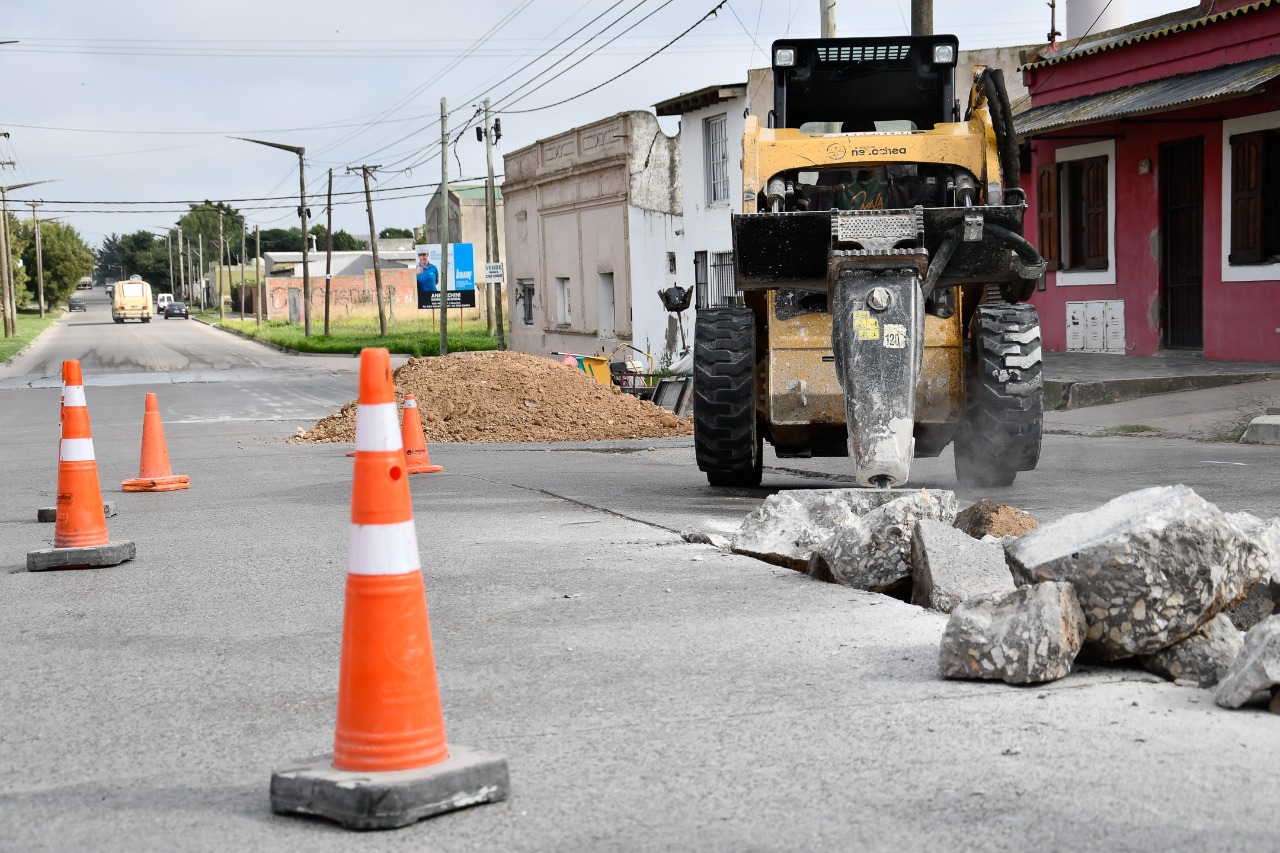 Personal municipal comenzó este martes con las tareas de rotura en dos viejos baches de grandes dimensiones de la arteria, entre 544 y 546.