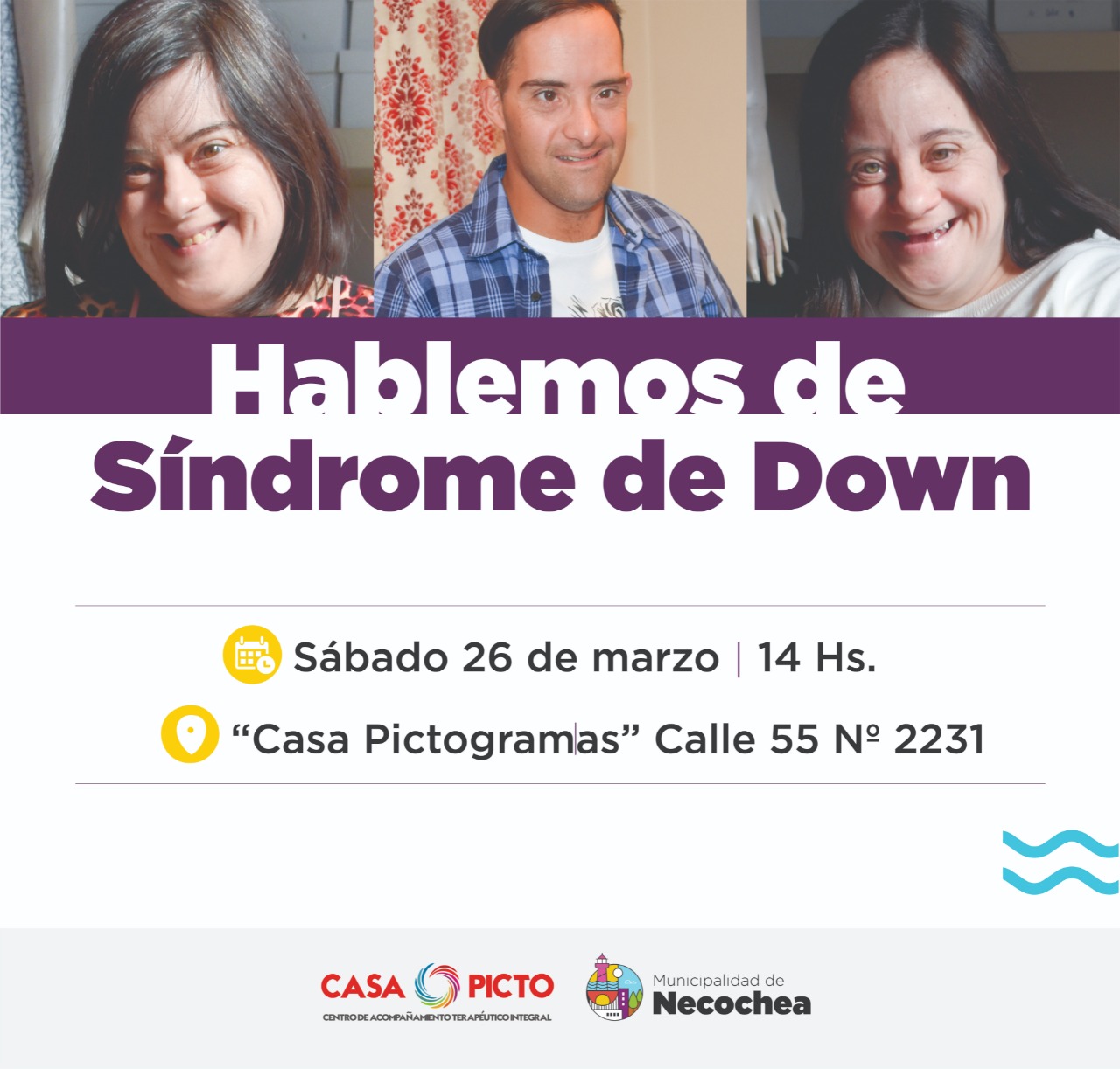 Con motivo de conmemorarse el pasado lunes 21 de marzo el Día Internacional de las Personas con Síndrome de Down, la Secretaría de Desarrollo Humano y Políticas Sociales, en coordinación con el equipo del Centro Terapéutico Pictogramas, realizará este sábado 26, a partir de las 14 en la sede de calle 55-2231, una jornada denominada Hablemos de Síndrome de Down.