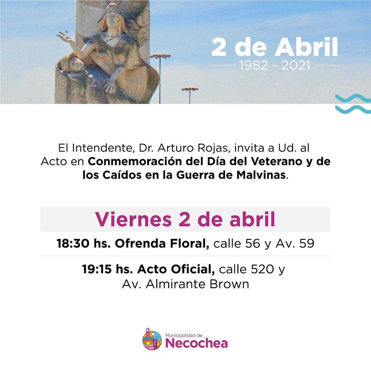 Desde el Departamento Ejecutivo, el intendente Arturo Rojas invita a participar de tan importante fecha conmemorativa y acompañar al grupo de Veteranos locales, siguiendo los protocolos sanitarios correspondientes y respetando el distanciamiento.
