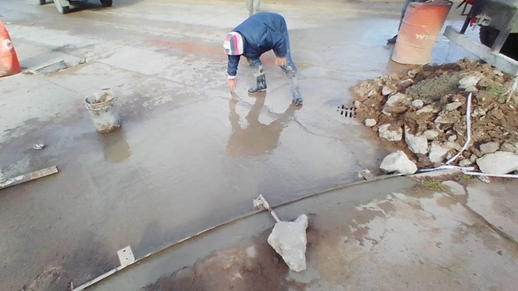 En tal sentido, el director de Infraestructura del municipio, Marcelo Gómez, apuntó que “este miércoles estuvimos hormigonando varios medios cruces en la calle 81 bis, en el interior del Barrio 9 de Julio, donde se hicieron alrededor de cinco metros cúbicos de hormigón de bacheo”.