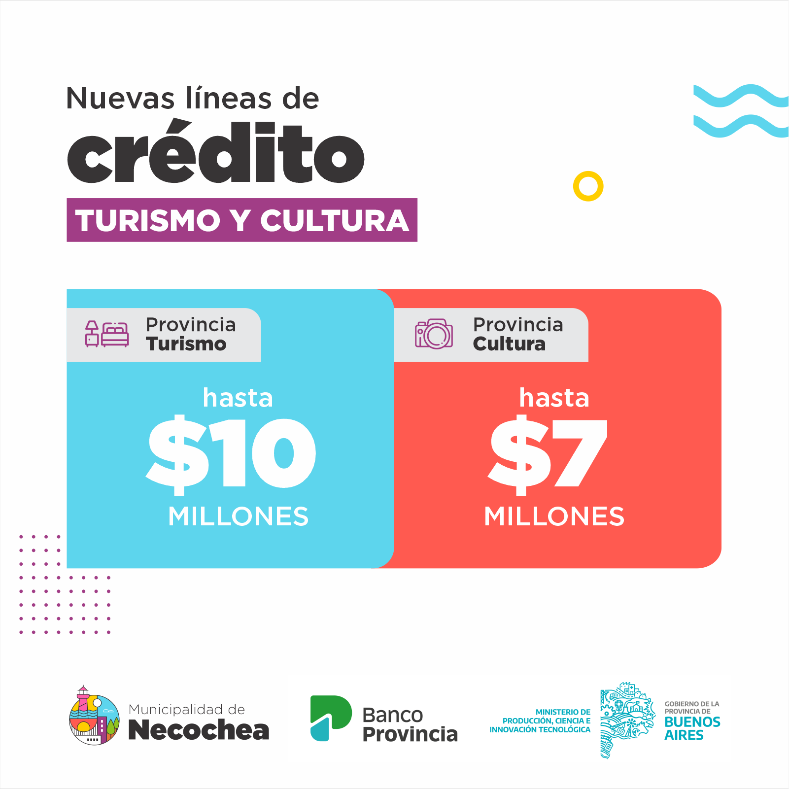 La Secretaría de Turismo y Desarrollo Productivo de la Municipalidad de Necochea informa que, hasta el próximo 31 de marzo del año en curso, quedaron vigentes dos importantes líneas crediticias que buscan fortalecer las actividades turísticas y culturales de la Provincia de Buenos Aires, destinadas a micro, pequeñas y medianas empresas.