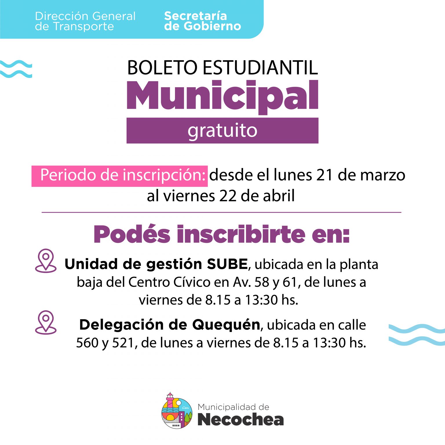 Tanto en Necochea, en la Unidad de gestión SUBE del Centro Cívico -en 58 y 61-, como en la Delegación Municipal de Quequén, en 521 y 560, la presencia de estudiantes para obtener el boleto fue marcada a lo largo de la mañana, a pesar del clima destemplado.