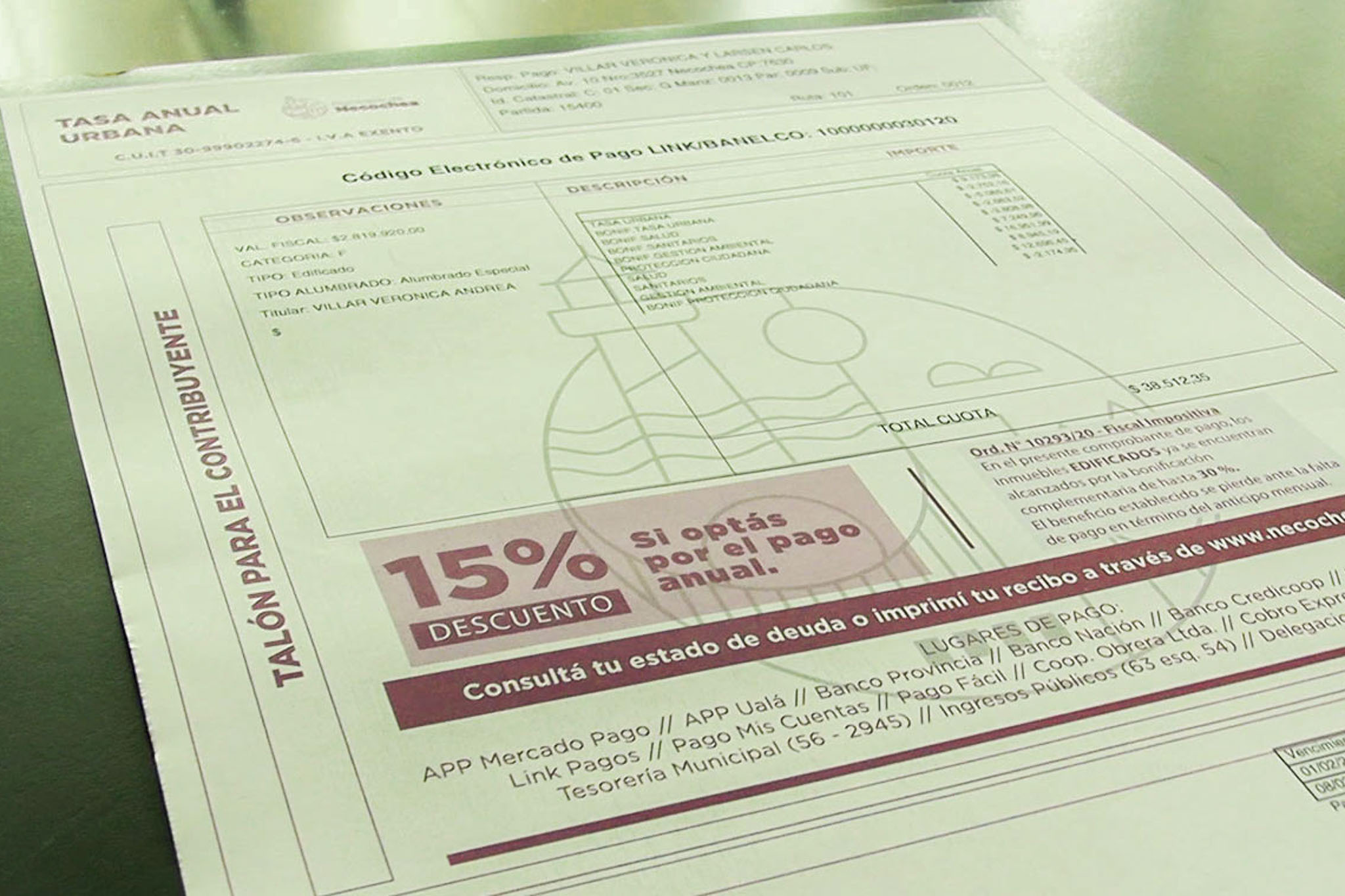 De esta manera, el contribuyente con este único pago anual de las tasas tendrá canceladas todas sus obligaciones con la Municipalidad de Necochea en lo que concierne al ejercicio 2021.