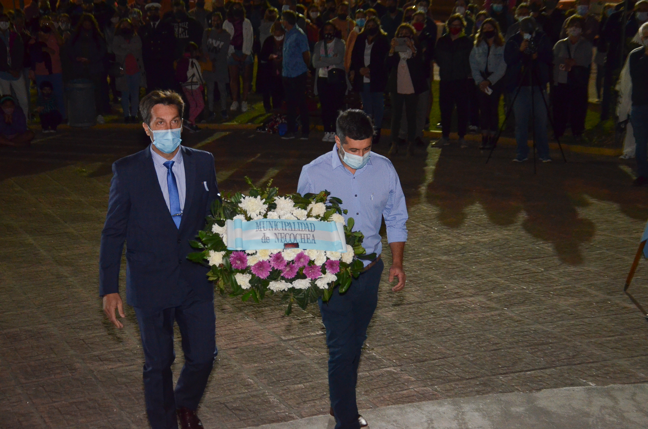 En la ceremonia central, en la que el Jefe de la comuna estuvo acompañado por funcionarios de su gabinete, participaron integrantes del Centro de Ex Combatientes de Malvinas de Necochea y Quequén, el delegado de la localidad, Bernardo Amilcar, y el presidente del Honorable Concejo Deliberante, Hernán Trigo; además de ediles de distintos bloques, autoridades eclesiásticas y de Prefectura Naval Argentina, y representantes del Consejo Escolar, asociaciones y entidades intermedias.